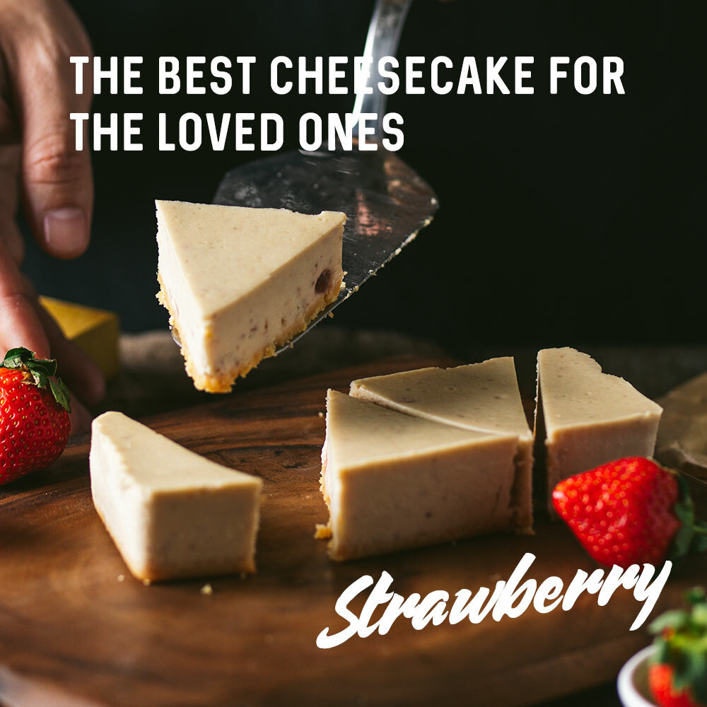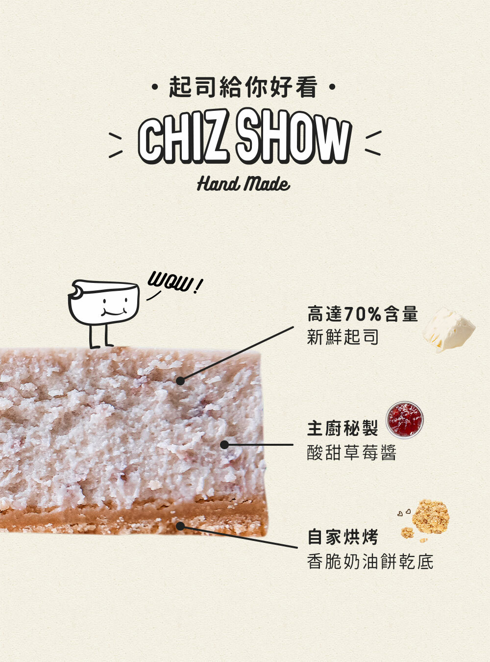精選台灣在地草莓,用慢火熬成漂浮微軟草莓顆粒的草莓醬,豪華地拌入特製濃郁起司,進爐烘烤後的起司蛋糕覆蓋著滿滿莓果香氣。