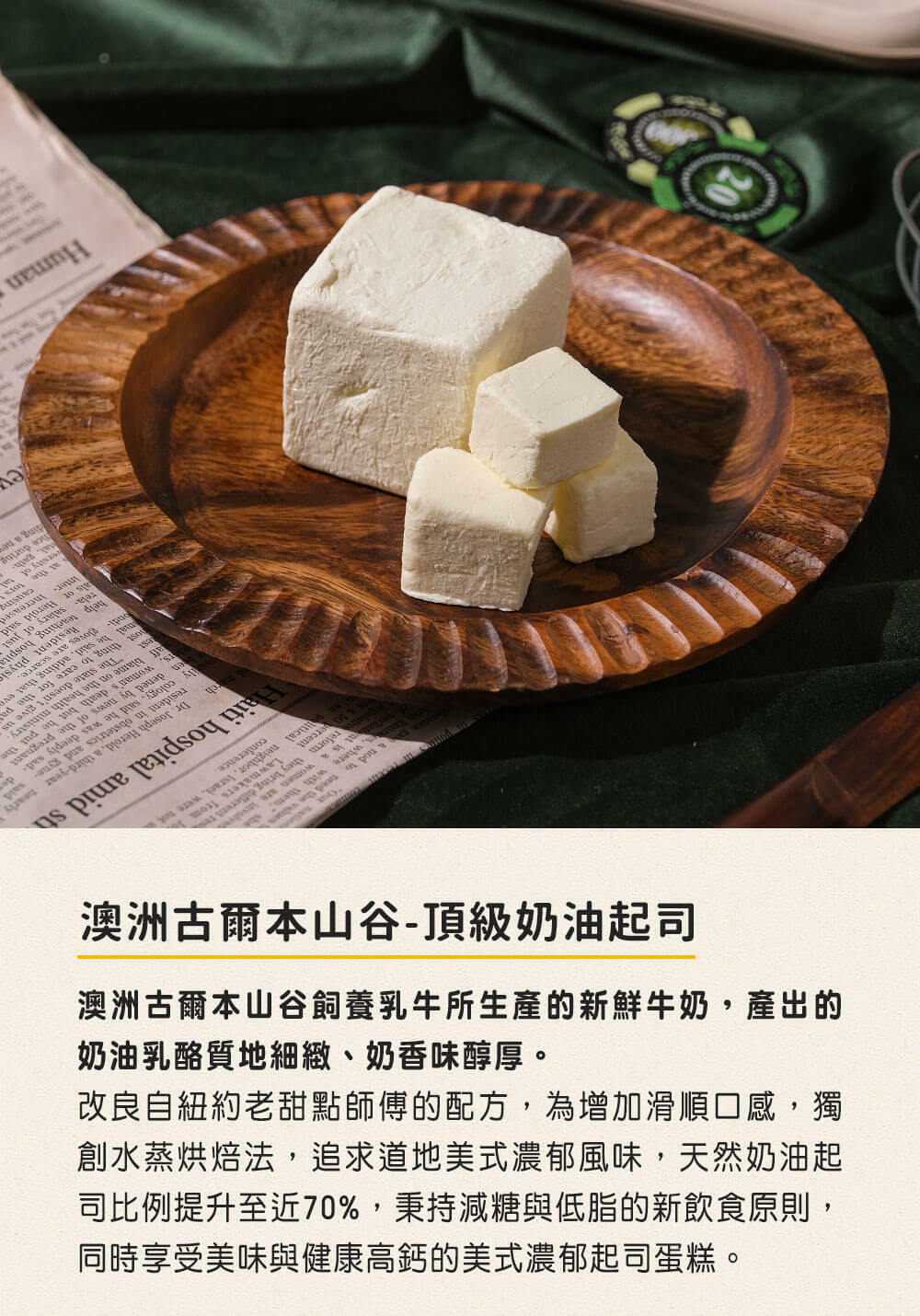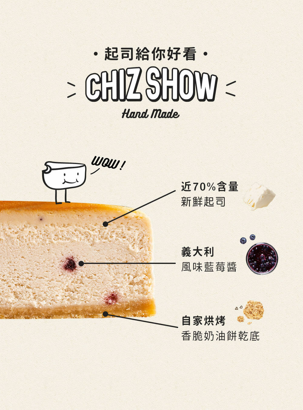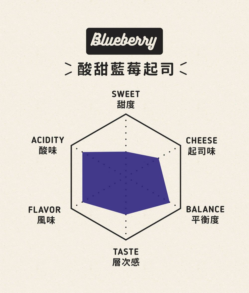 | 甜度 | 招牌黃金起司 ★ ★ ★ ☆ ☆ 酸甜藍莓起司 ★ ★ ★ ★ ☆ |