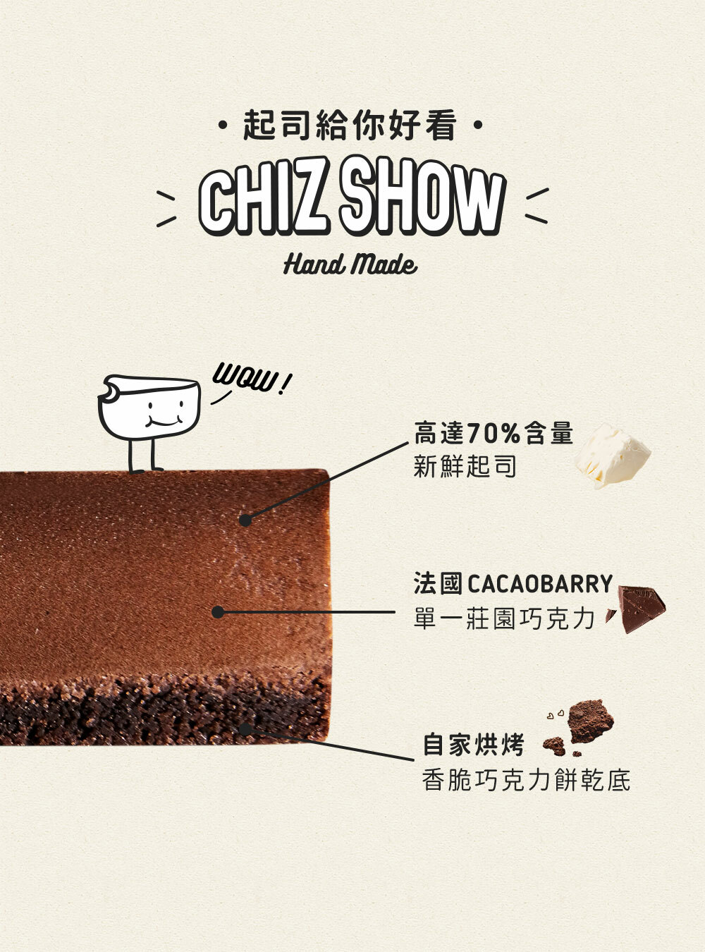 奢侈選用法國單一莊園75%濃醇巧克力,展現略帶苦甜的成熟滋味,乳酪的細膩質地增添美妙口感,一口,再一口,盡情享受這份濃烈吧