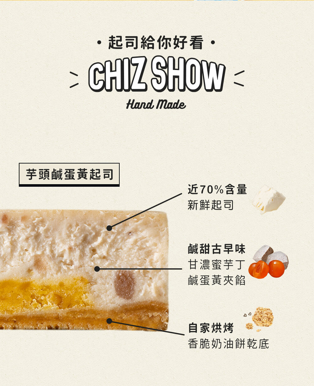 三種口味任選:招牌黃金起司、雪戀草莓起司、芋頭鹹蛋黃起司
